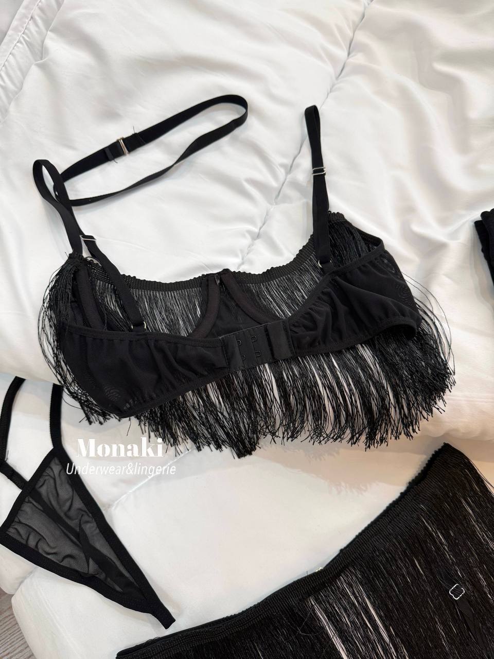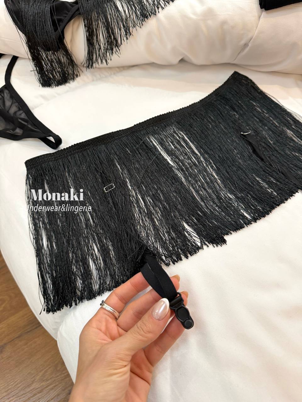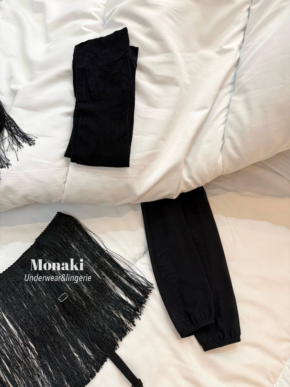 پک هفت تیکه شامل:سوتین فنردار،دامن همراه بند جوراب ،شورت،ساق دست چوکر گردن و رانبند و جوراب .