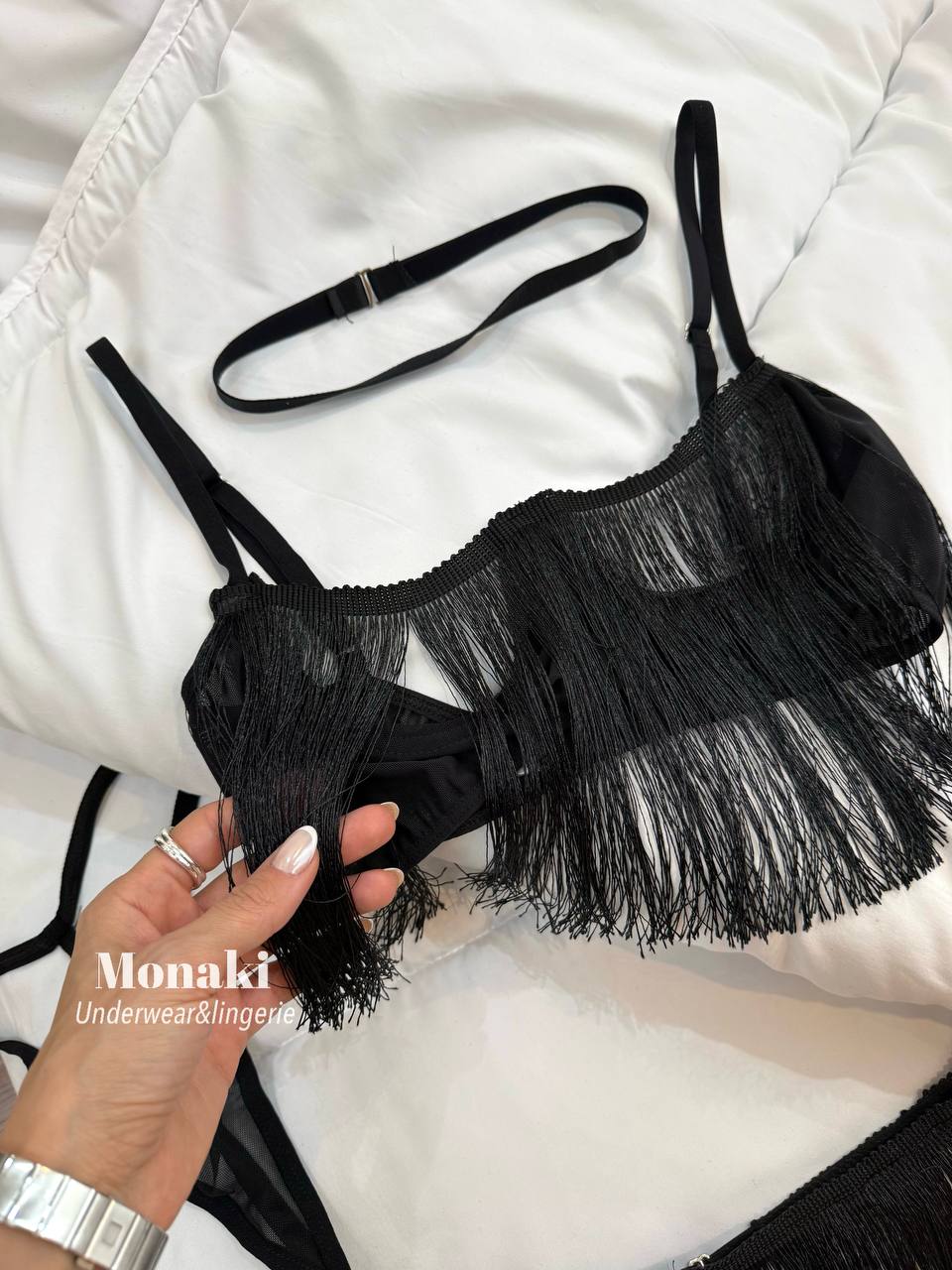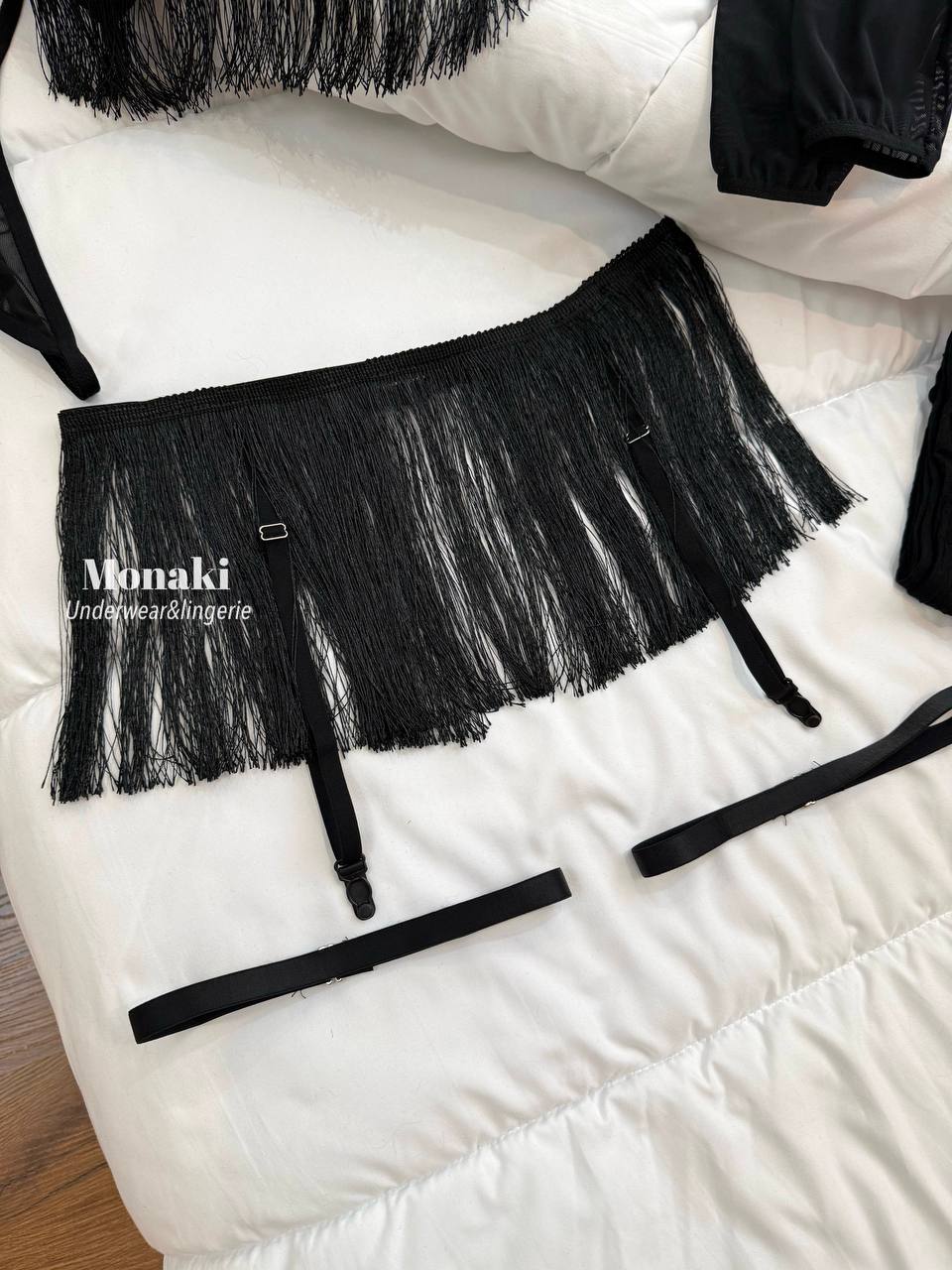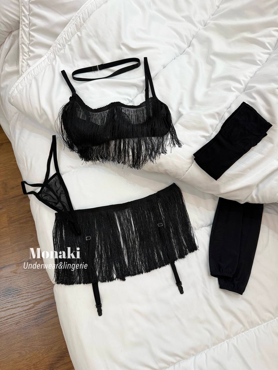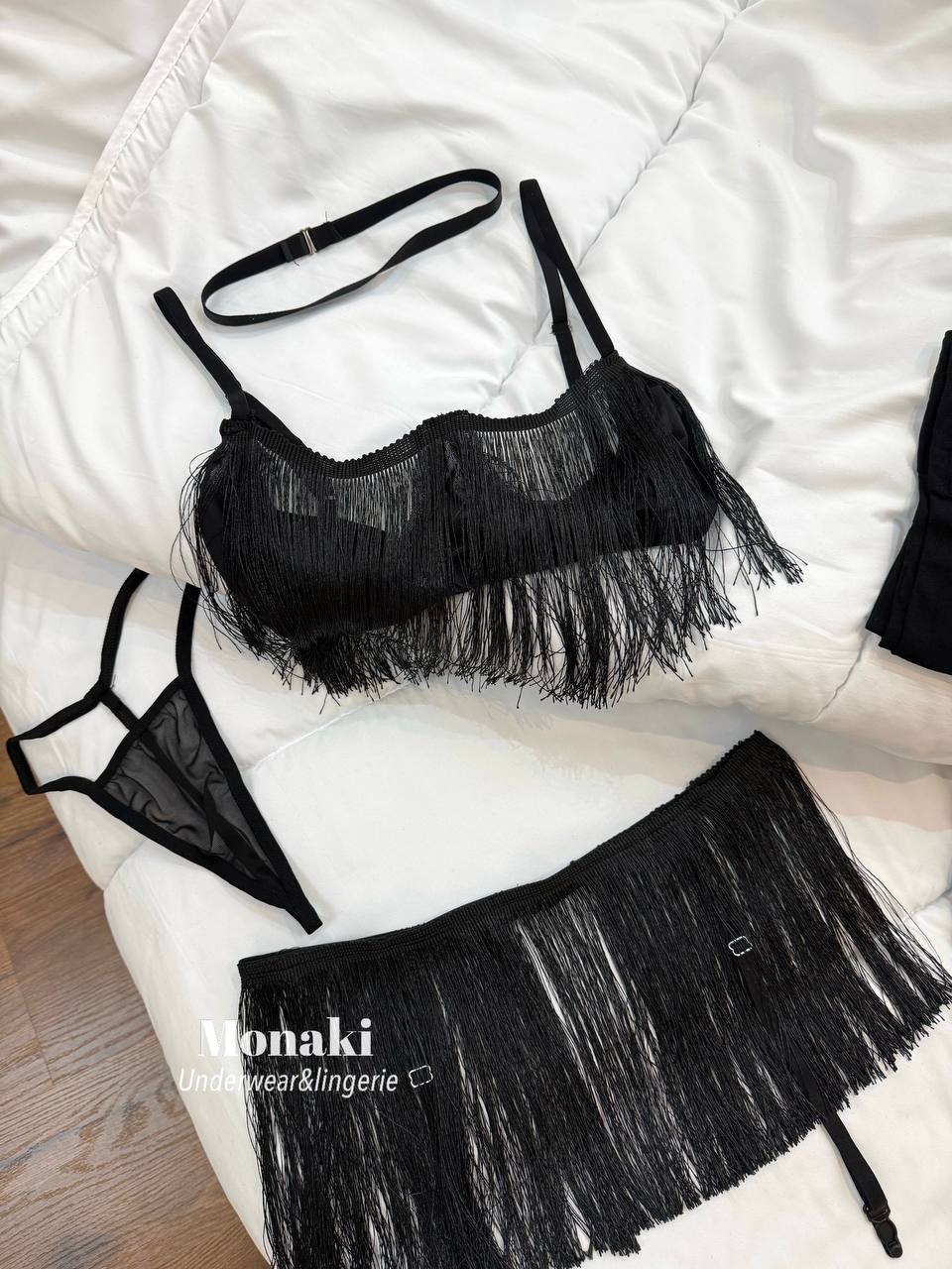 پک هفت تیکه شامل:سوتین فنردار،دامن همراه بند جوراب ،شورت،ساق دست چوکر گردن و رانبند و جوراب .