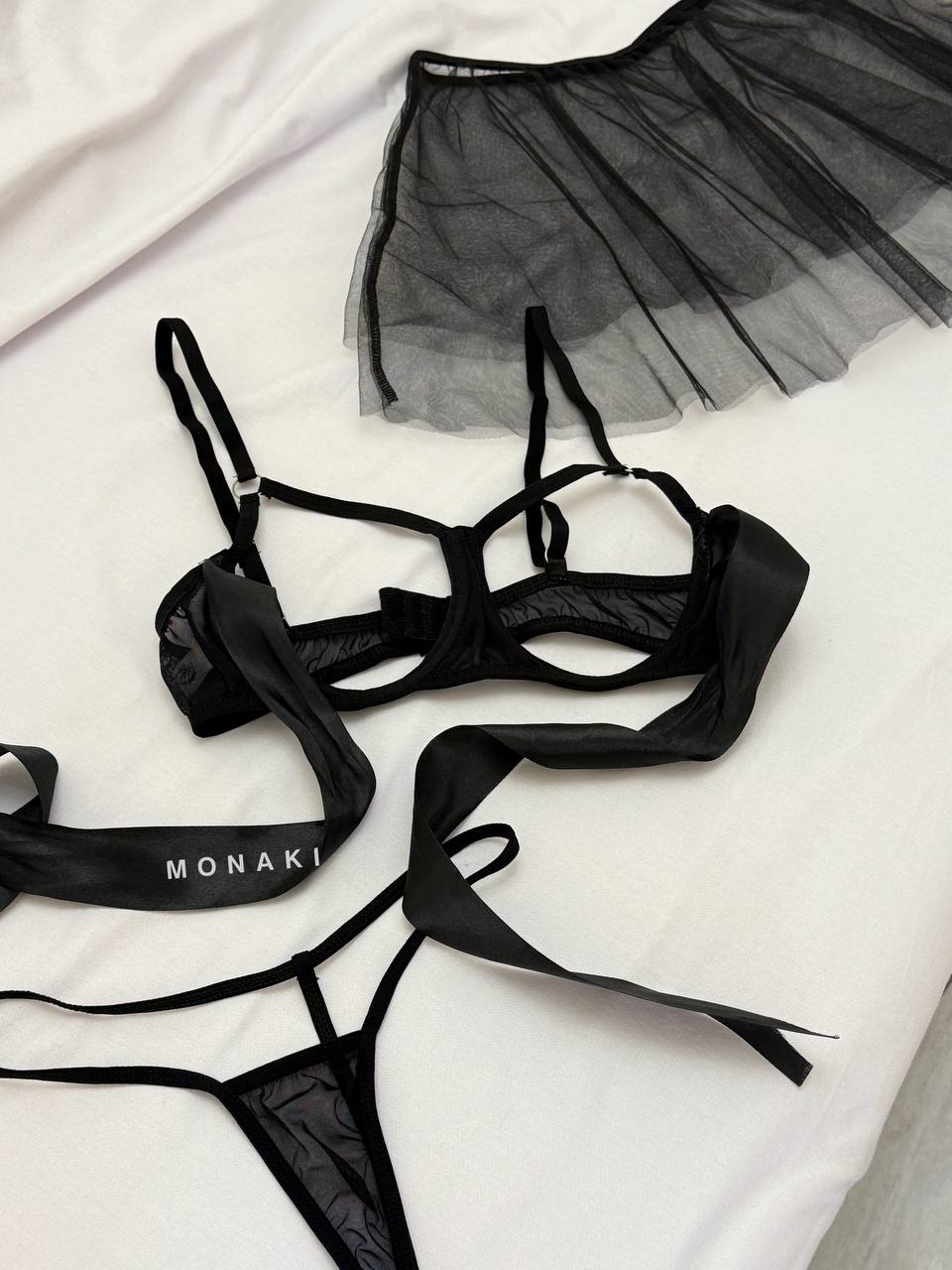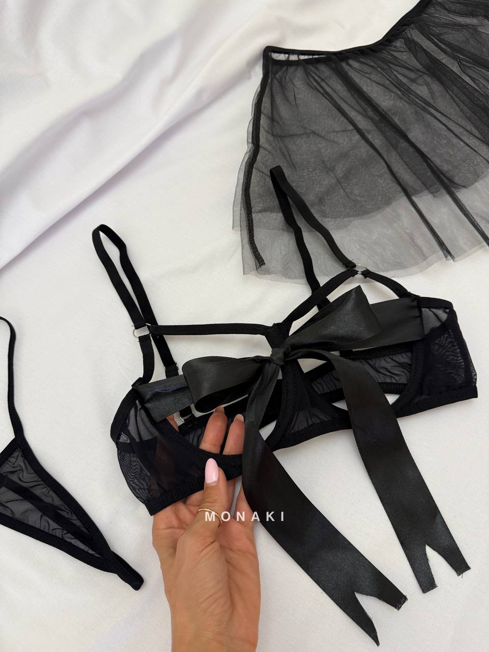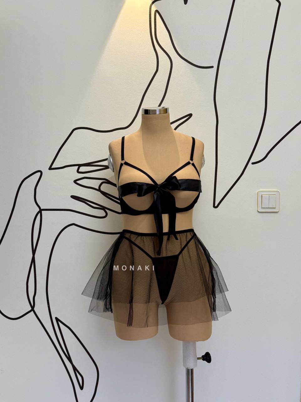 پک شامل:سوتین فنردار جلو باز پاپیونی بازشو ،دامن خریر بدنما و لامبادا