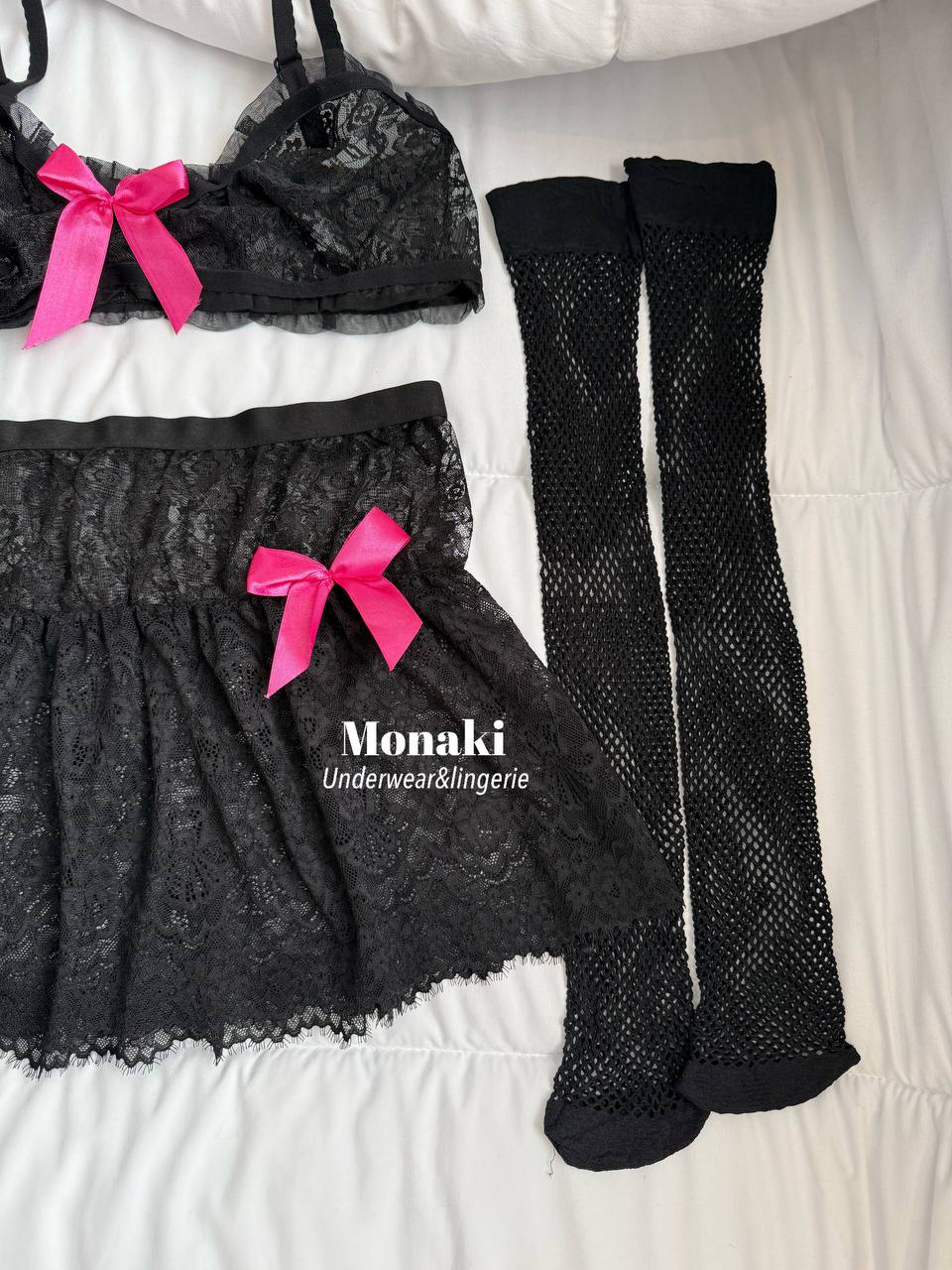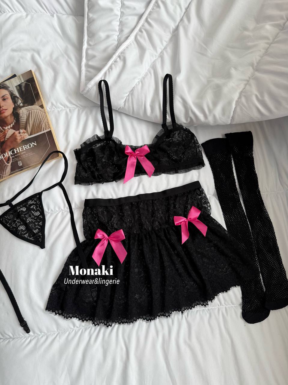 پک شامل:نیمتنه،دامن،شورت(بند جوراب متصل) و جوراب فیشنت .