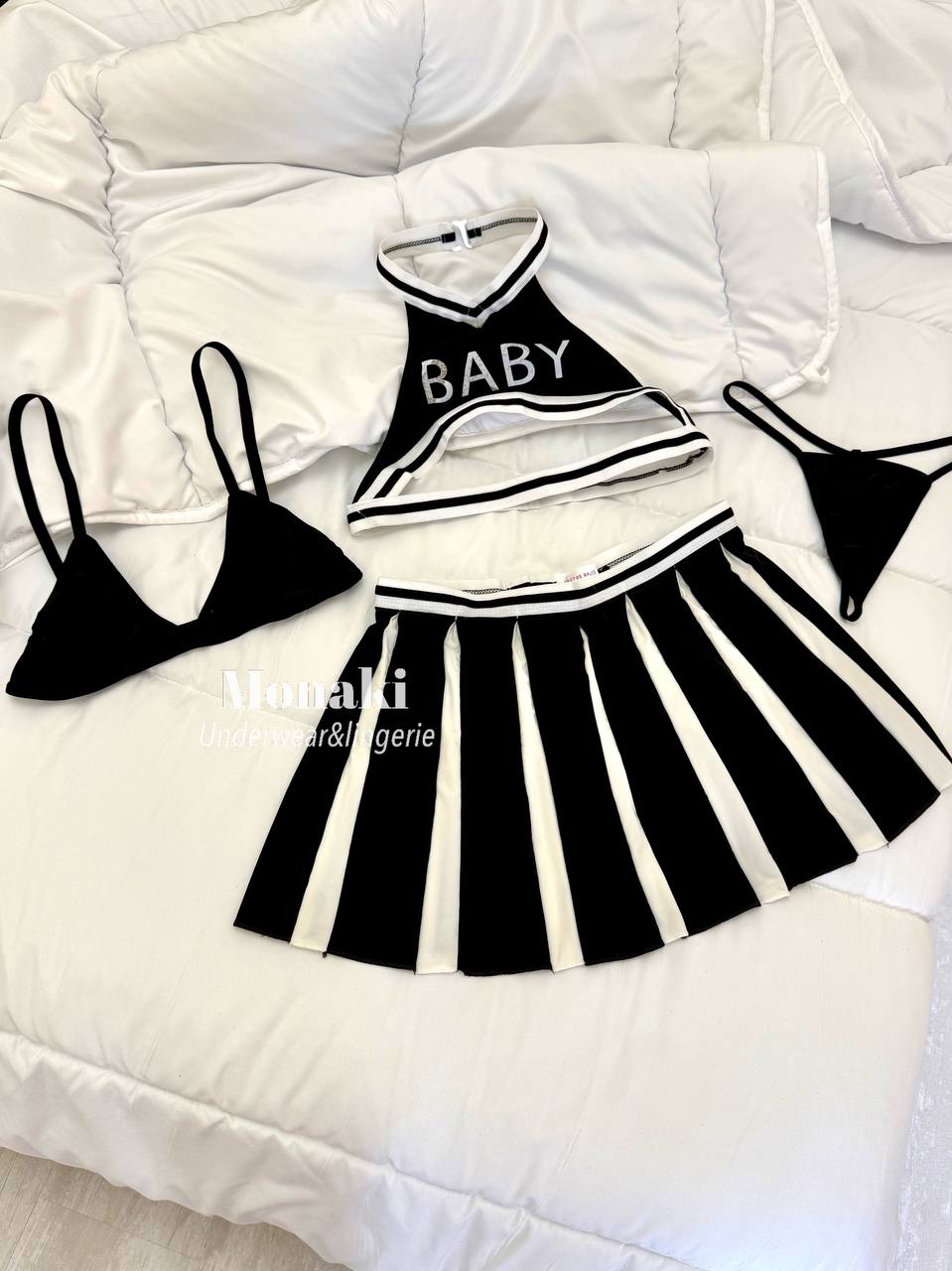 پک ۴ تیکه شامل: سوتین، نیمته، دامن و شورت لامبادا.